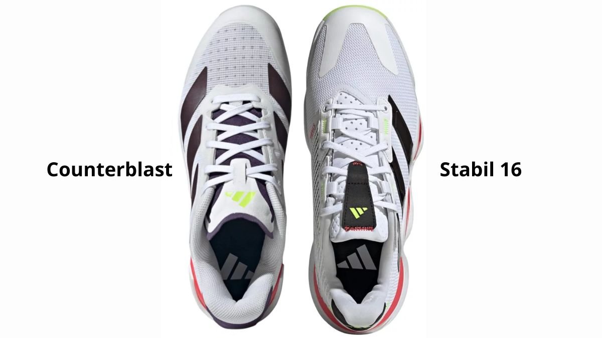 Ambas comparten la calidad de construcción y el agarre de la gama indoor de adidas, pero el enfoque es opuesto: la Stabil protege, la Counterblast acelera.